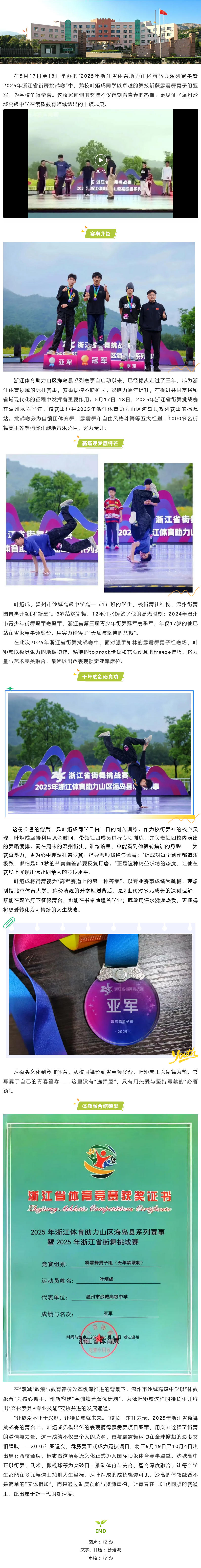 剑指亚运,未来可期 | 热烈祝贺我校叶炬成同学勇夺浙江省街舞挑战赛霹雳舞亚军!